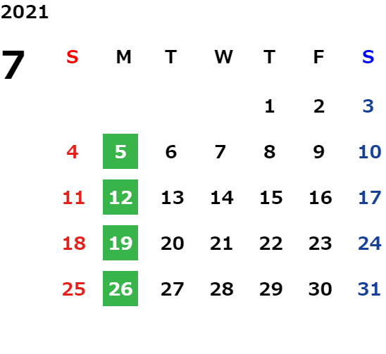 毎週月曜日