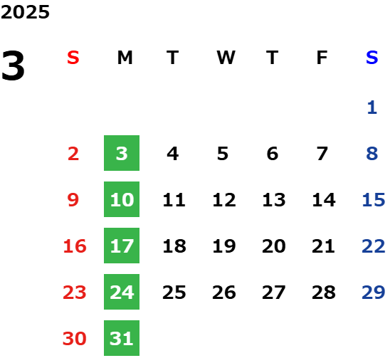 ※毎週月曜日は定休日、8月11日〜15日は夏季休業となります。