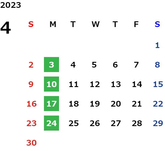 ※毎週月曜日は定休日、8月11日〜15日は夏季休業となります。