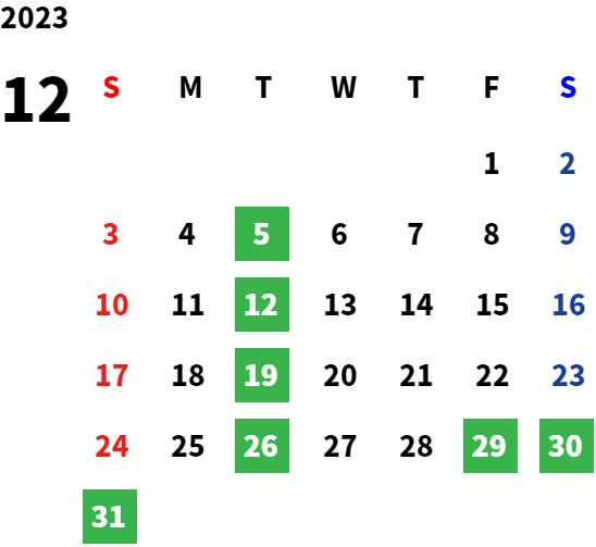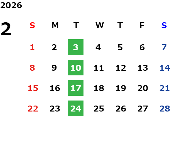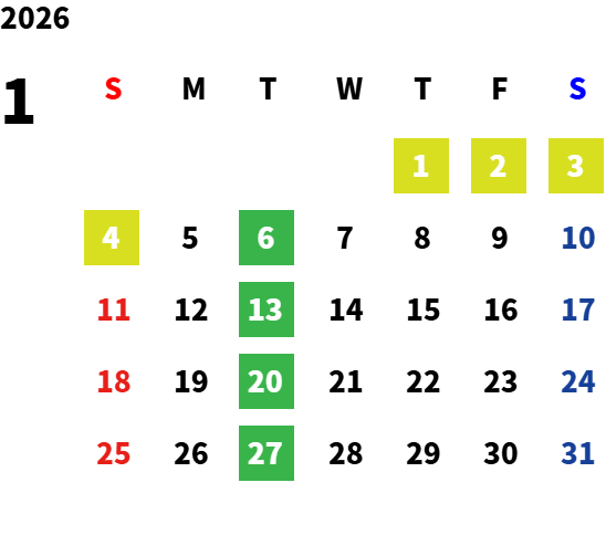 ※毎週月曜日は定休日、8月11日〜15日は夏季休業となります。