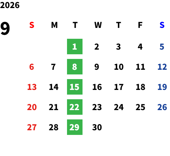 2025年12月29日(月)~2026年1月5日(月):一斉 休業