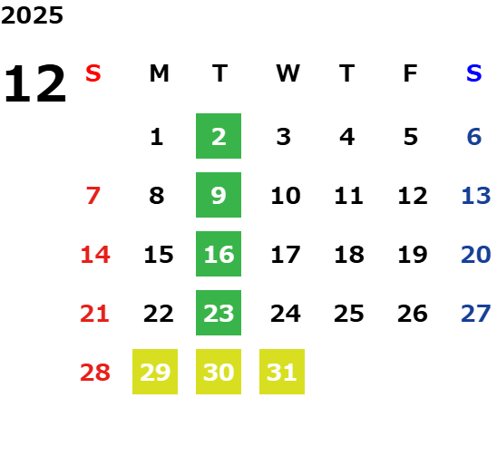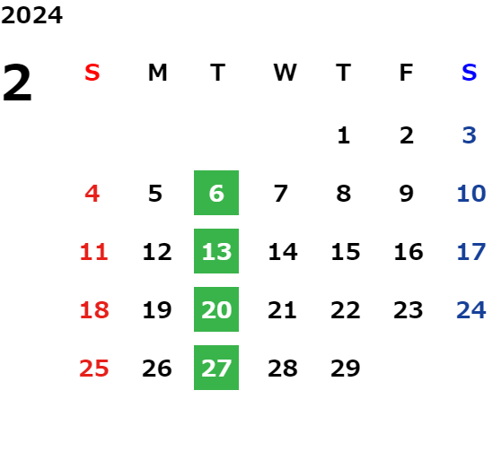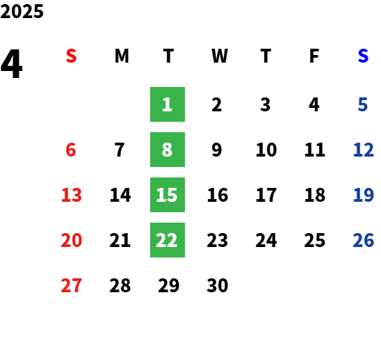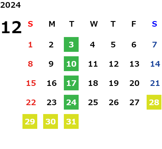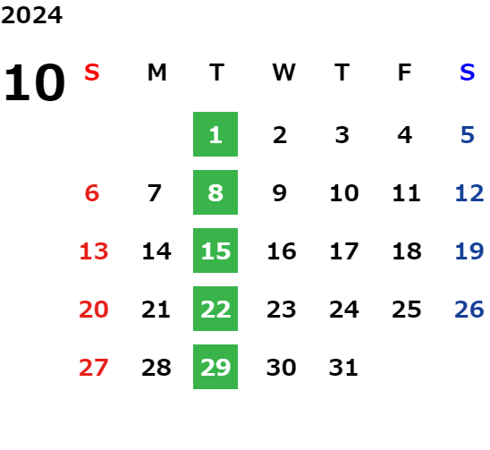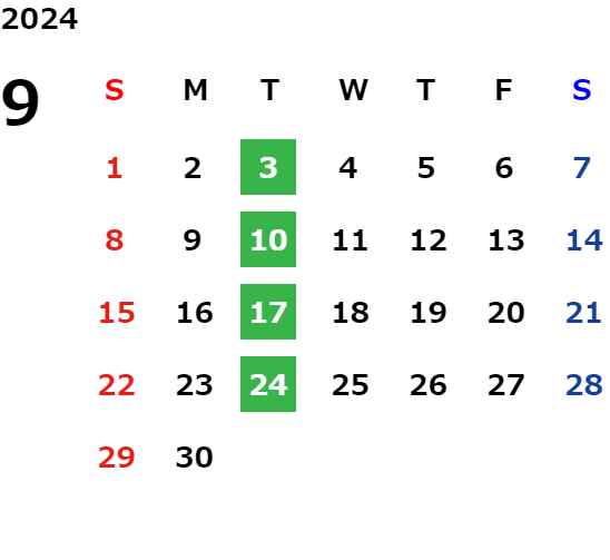 ※毎週月曜日は定休日、8月11日〜15日は夏季休業となります。