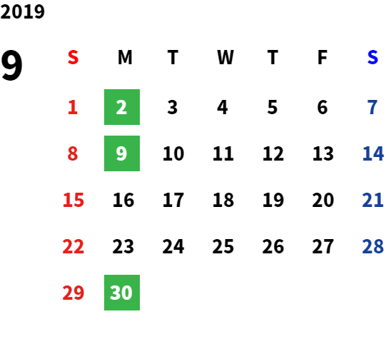 営業日カレンダー