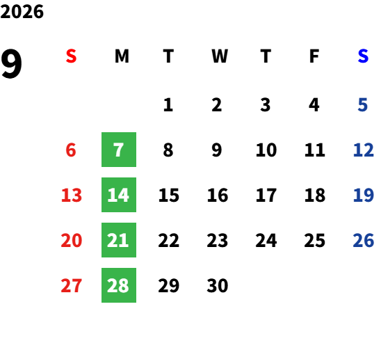 2025年12月29日(月)~2026年1月5日(月):一斉 休業