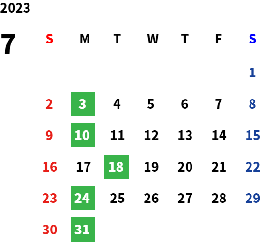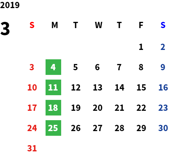 毎週月曜日